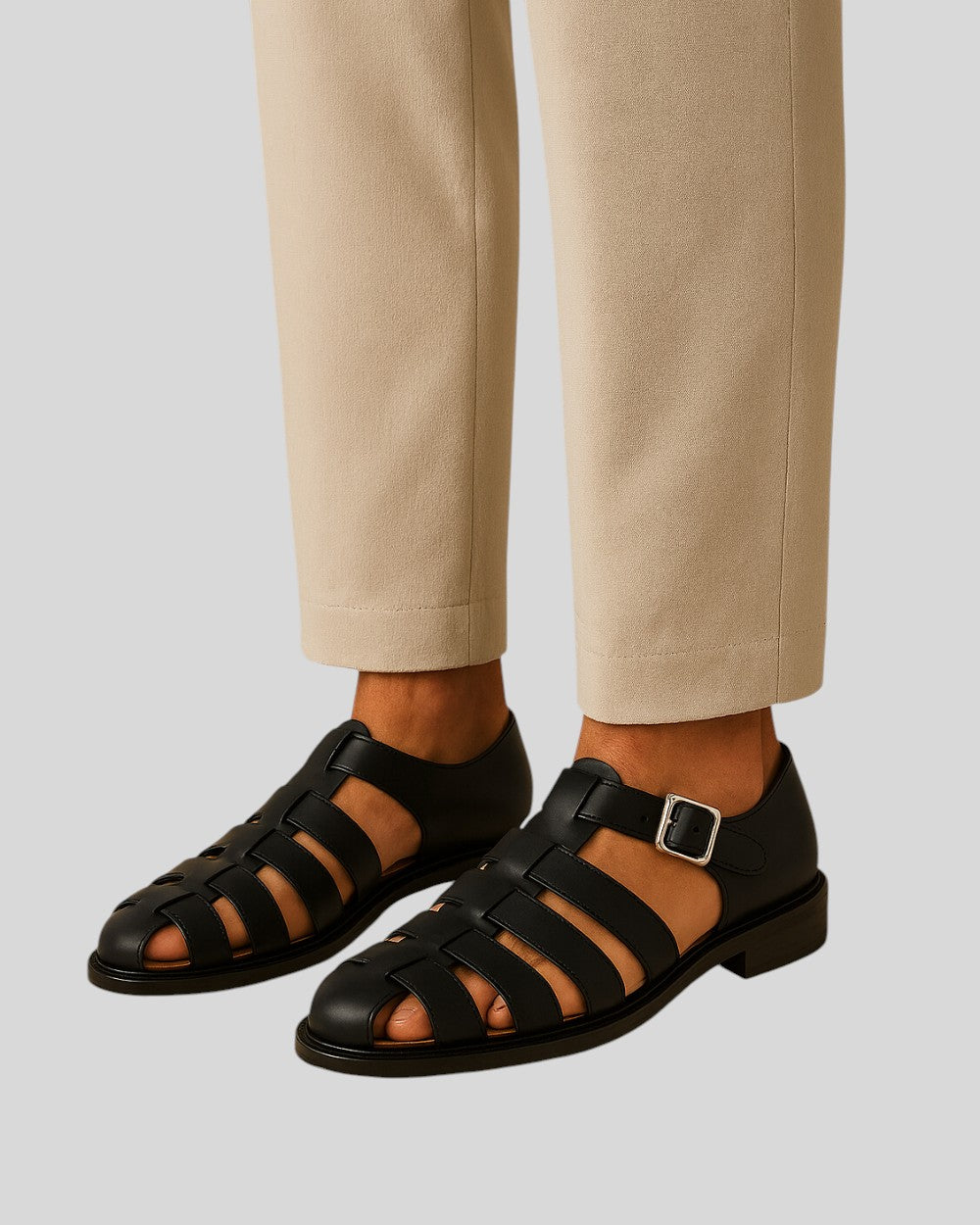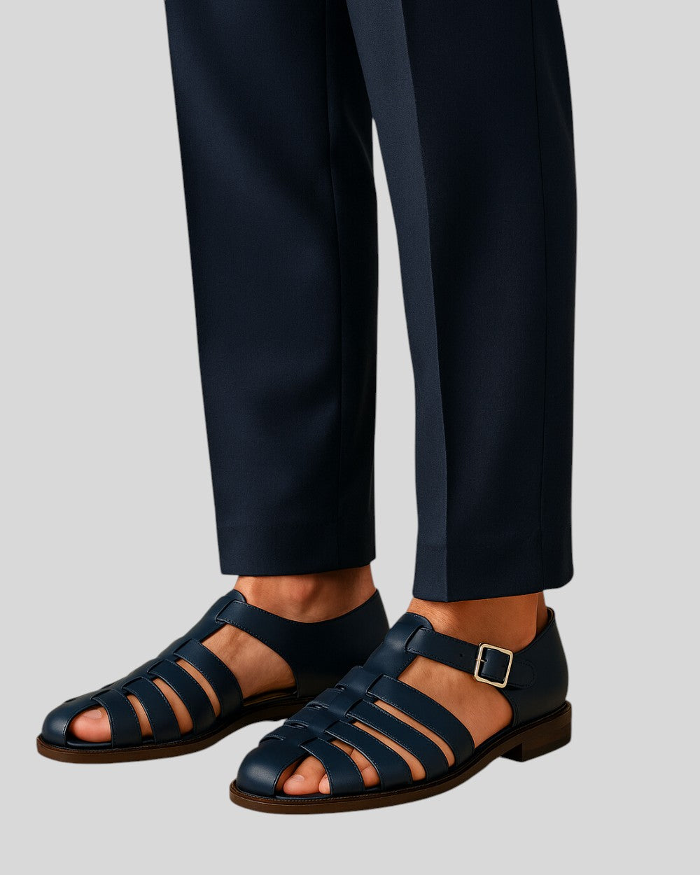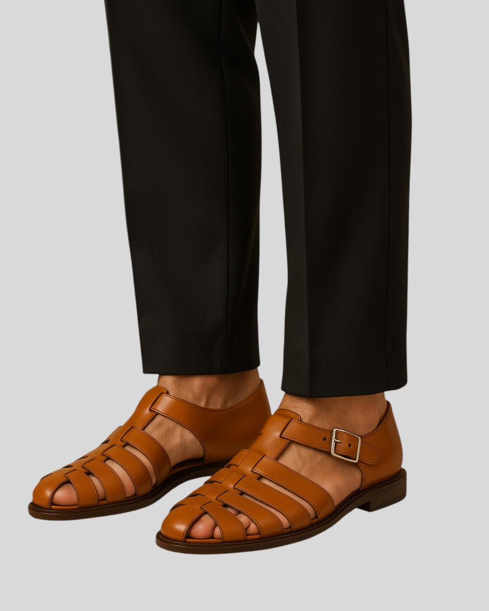 Ezek a szandálok az elegancia és a sikkes, lezser stílus esszenciáját testesítik meg. Kiváló minőségű bőrből készültek, páratlanul kifinomult megjelenést kölcsönöznek. A klasszikus dizájnt egy csipetnyi modernitással ötvözik, így ideális választást jelentenek a modern férfi számára, aki a funkcionalitást és a kifinomultságot keresi.