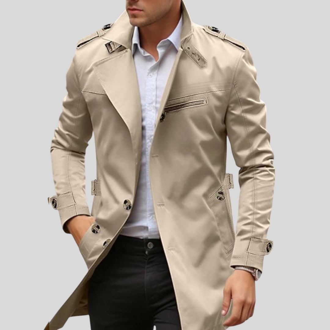 Ez a kabát tökéletes darab azoknak a férfiaknak, akik értékelik a kifinomult, mégis funkcionális stílust. Klasszikus gabardin dizájnjával és modern részleteivel ideális választás, hogy eleganciát és védelmet vigyen ruhatárába.