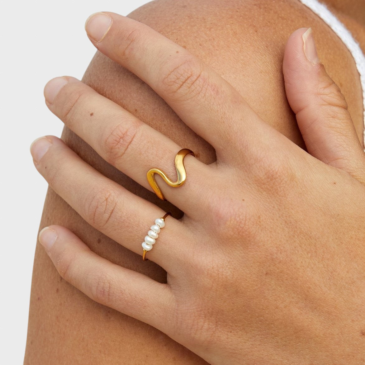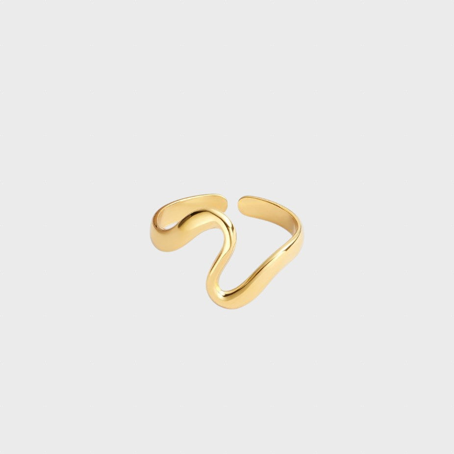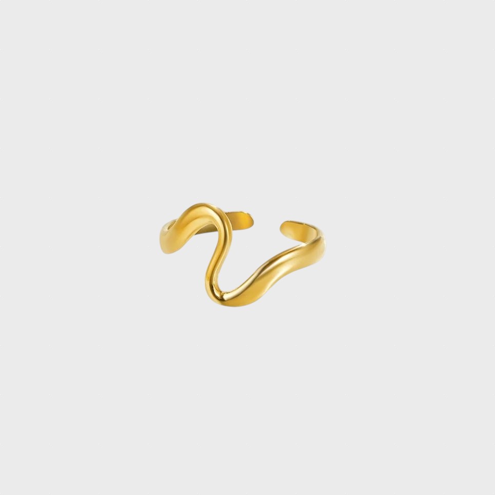 Ez a „Wave in Motion” gyűrű egy olyan ékszer, amely a szobrászati ​​és minimalista dizájnt ünnepli. Folyamatos, hullámzó formája, polírozott aranyszínű fémből, a víz könnyedségét vagy a kézzel készített művészi ecsetvonásokat idézi. A nyitott kialakítás kényelmes illeszkedést biztosít, így praktikus kiegészítő, ugyanakkor meghatározó darab is. Ez az a modern művészeti vonás, ami hiányzott ahhoz, hogy eleganciával és személyiséggel tegyük teljessé a megjelenésedet .