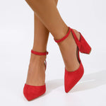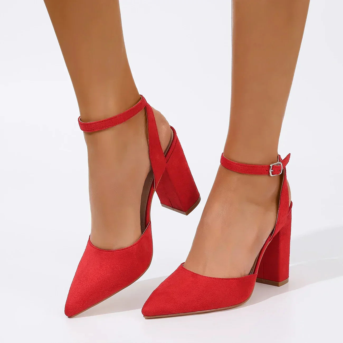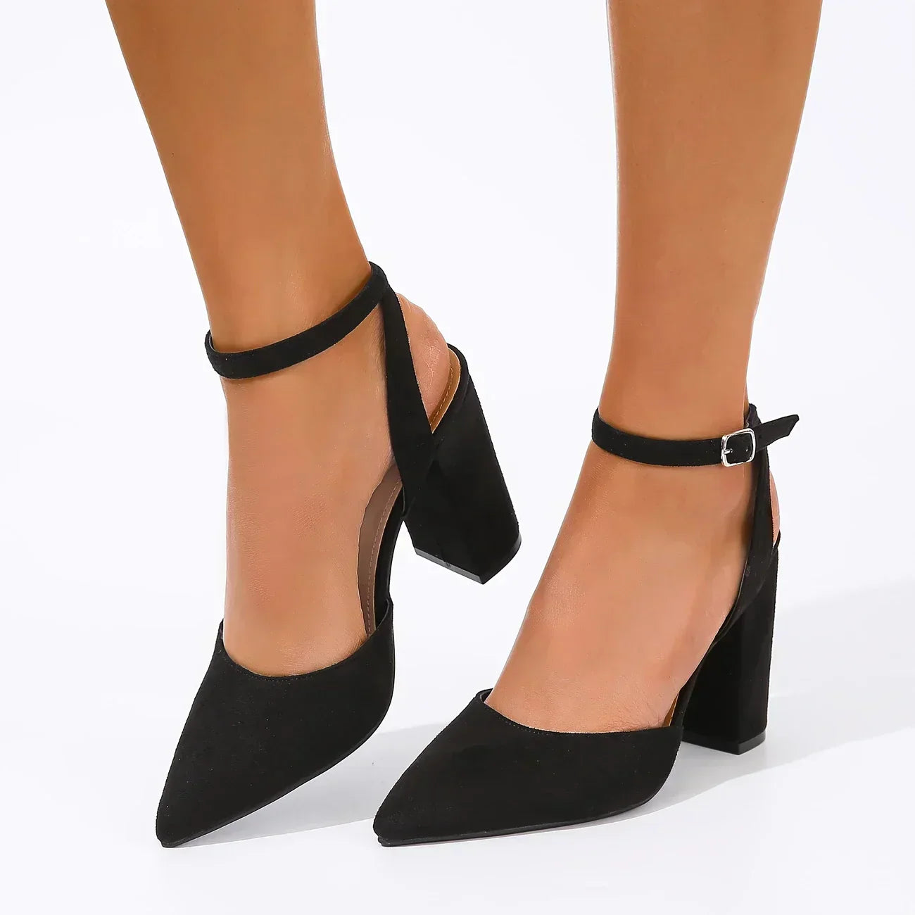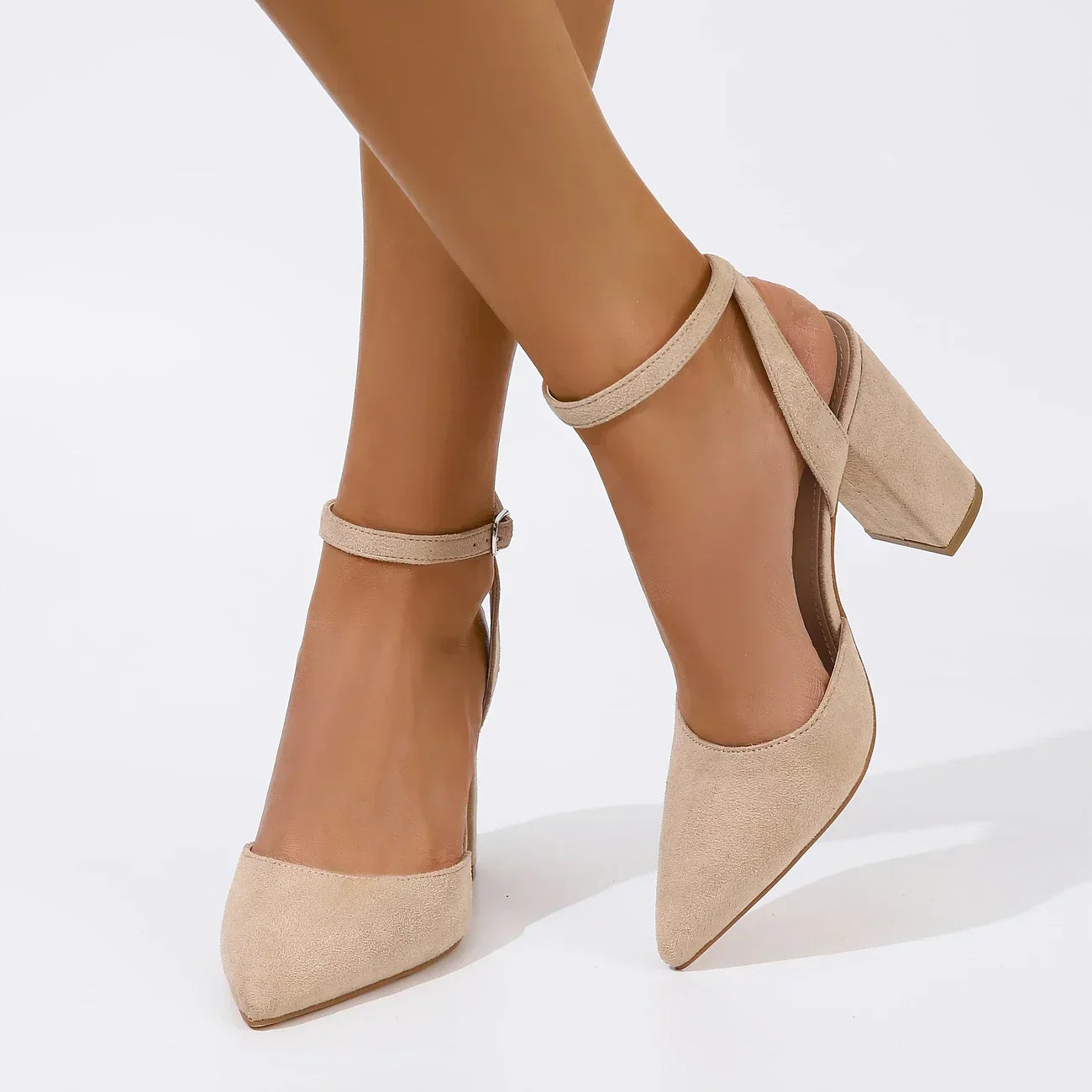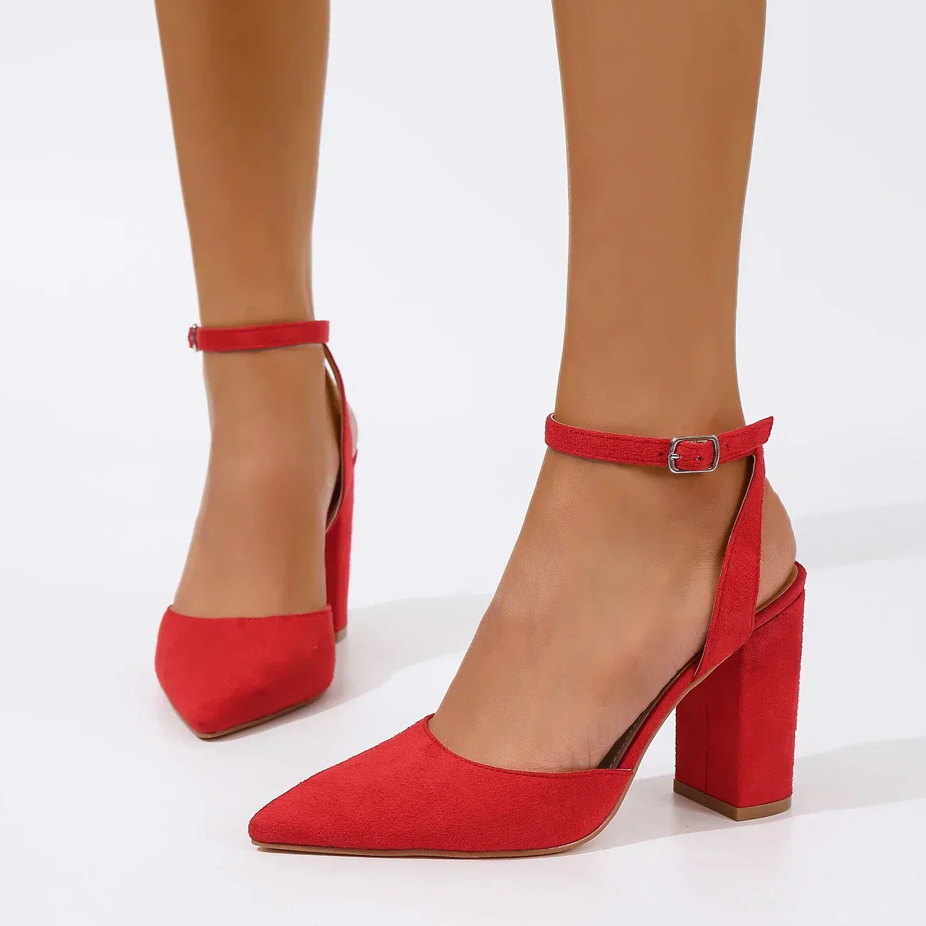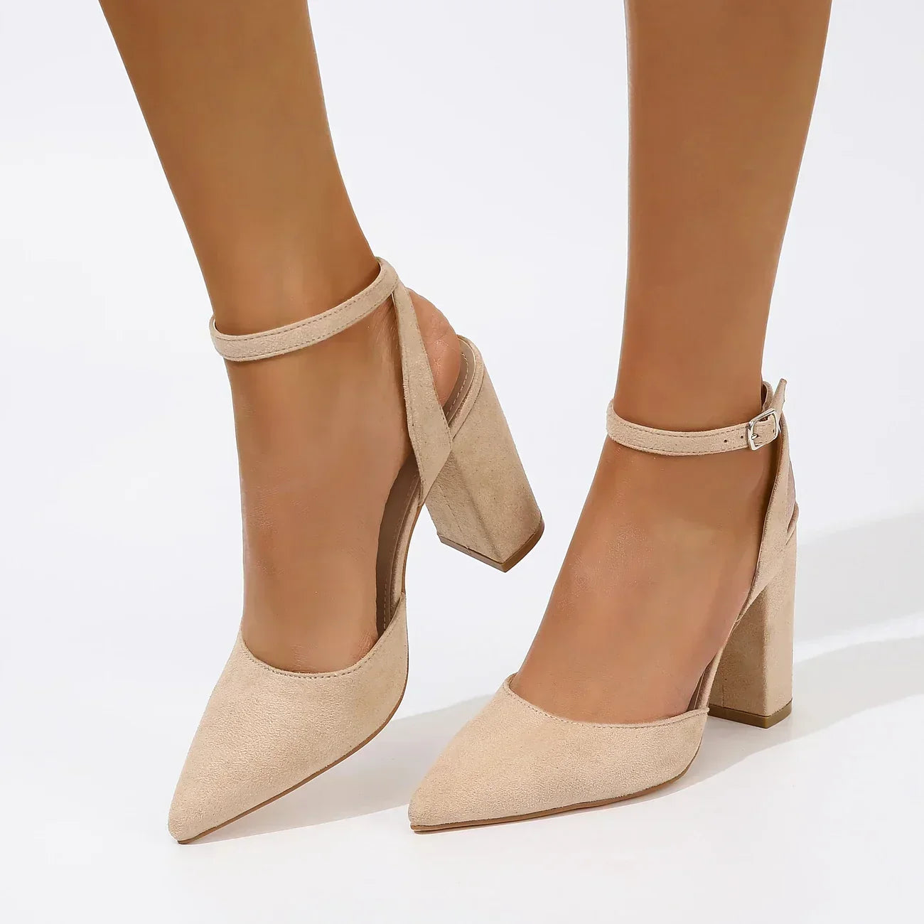 Ezek a magas sarkú cipők a klasszikus, nőies formát modern, robusztus dizájnnal ötvözik. Kifinomult stílusukat az anyag bársonyos textúrája és a sarok modern formája fokozza.