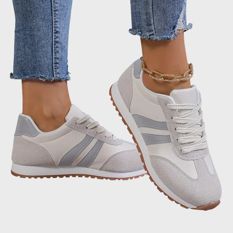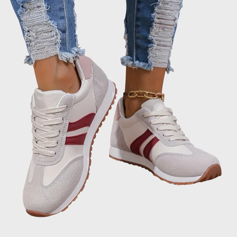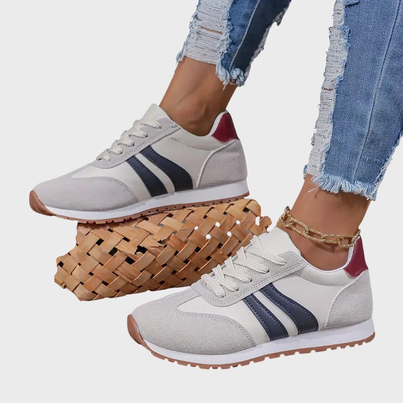 • Oldalsó csíkok részletei: Az oldalsó vízszintes csíkok dinamikus vizuális hatást keltenek, amely az atlétikai stílusra jellemző.