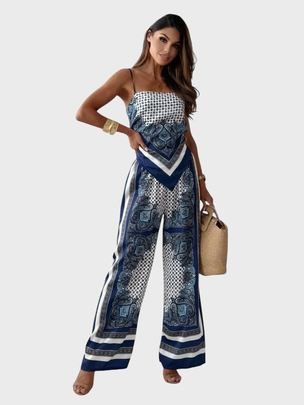 Fedezd fel a klasszikus báj és a modern kényelem tökéletes keverékét ezzel a kétrészes szettel, amely egy felsőből és egy nadrágból áll. Ideális egész napos viseletre, és bármilyen megjelenéshez finom és azonnali kifinomultságot kölcsönöz.