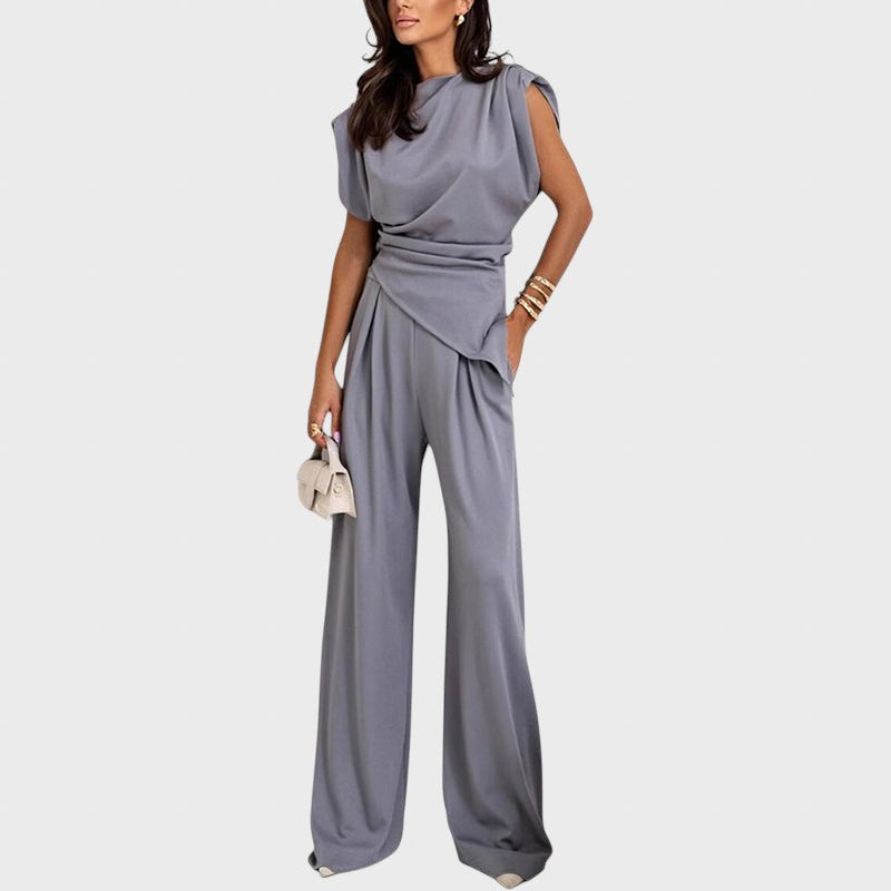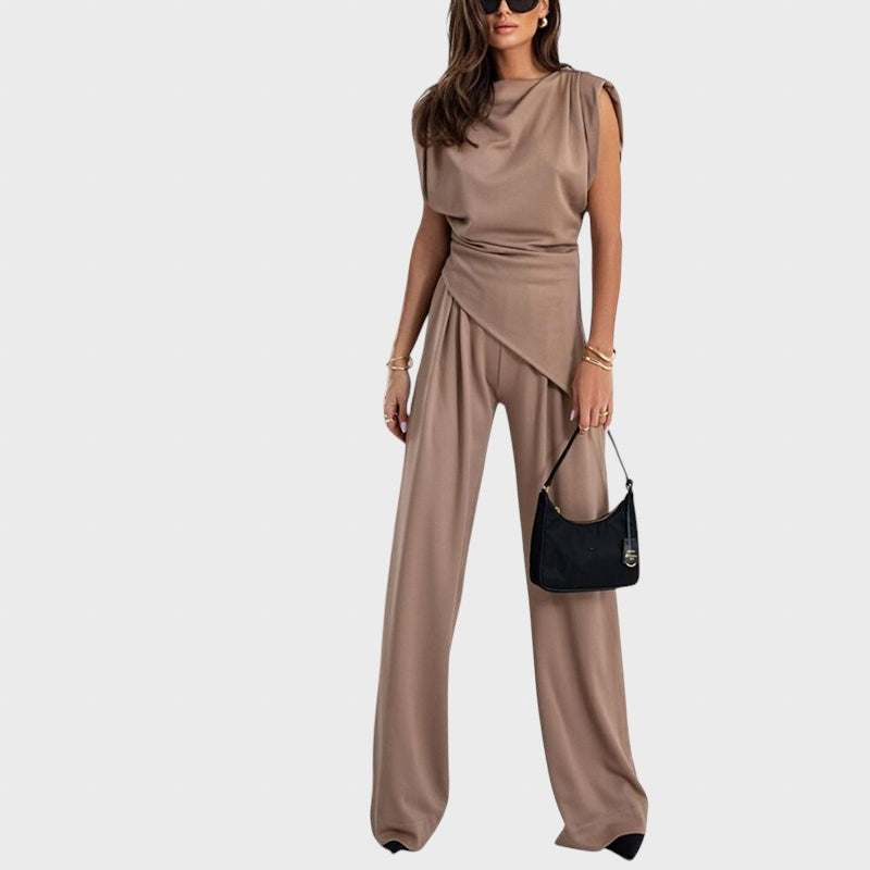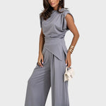 Készülj fel a lenyűgözésre ezzel az összehangolt, kétrészes szettel, amely újraértelmezi a modern eleganciát . Tökéletes azok számára, akik egy overál kifinomultságát egy kétrészes szett sokoldalúságával keresik.
