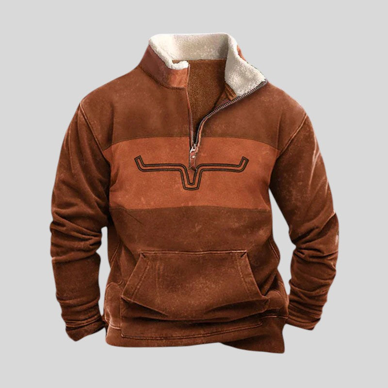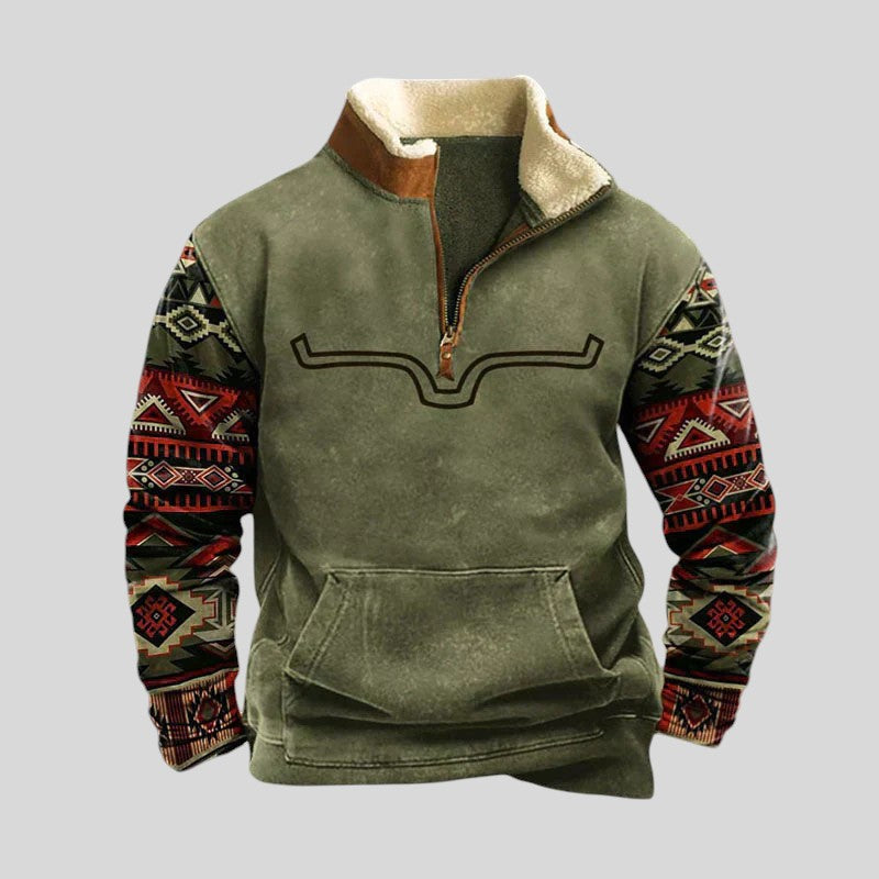 Ez a cipzáras kötött pulóver a klasszikus dizájn és az eredetiség tökéletes ötvözete. Részletes mintázatának és kiváló minőségű anyagainak köszönhetően melegen tart és kifogástalanul fog kinézni, akár egy vidéken sétálsz, akár egy laza összejövetelen találkozol a barátaiddal.