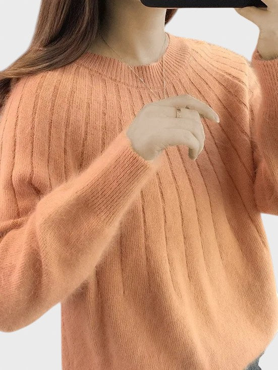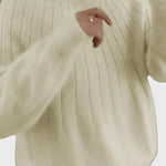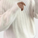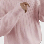 Öleld magadhoz a kényelmet és a minimalista eleganciát ezzel a kötött pulóverrel! Puha, bolyhos hatást keltő fonalból készült, így ez a darab a hidegebb napokra is meghitt luxust kínál, gazdag textúrát és finom csillogást kölcsönözve megjelenésednek .
