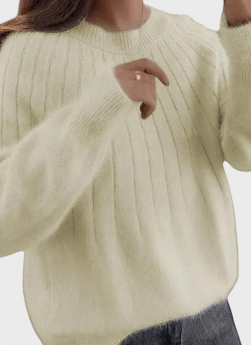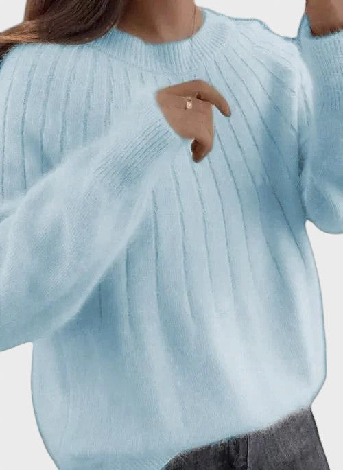 Hella™ - Kerek nyakú pulóver bolyhos gallérral