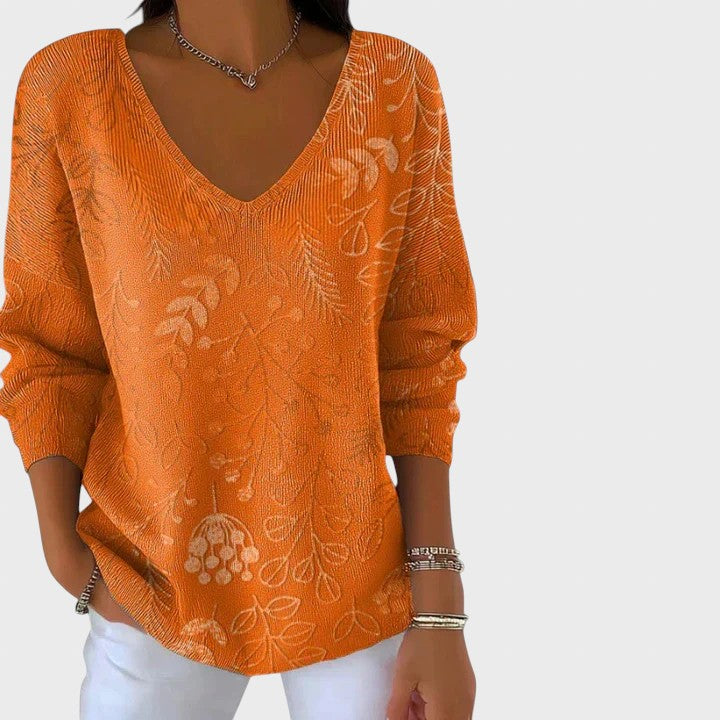 Ez a pulóver tökéletes választás egy laza őszi stílushoz, stílusos V-nyakkal és laza szabással egész napos kényelmet biztosít. A meleg színt gazdag textúrával és egyszerű dizájnrészletekkel ötvözi, így ez a darab tökéletesen feldobja az őszi/téli ruhatáradat.