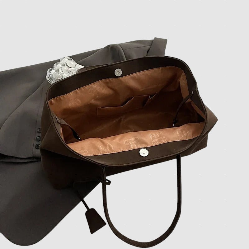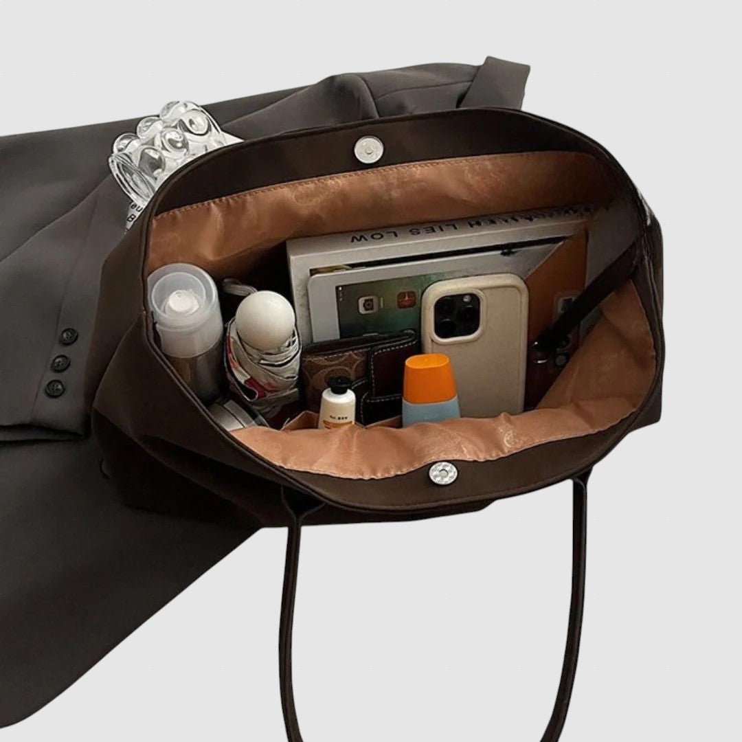 • Kapacitás és funkcionalitás: Kialakításának köszönhetően mindent magaddal vihetsz benne, a legszükségesebb tárgyaktól kezdve a nagyobb tárgyakig, például számítógépekig, könyvekig vagy tabletekig. A hosszú, masszív pántok biztosítják a szükséges kényelmet, lehetővé téve, hogy a táskát nehezebb súly esetén is vállon hordhasd, így ideális a mindennapi élet tempójához.